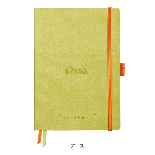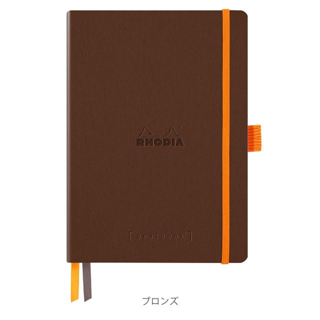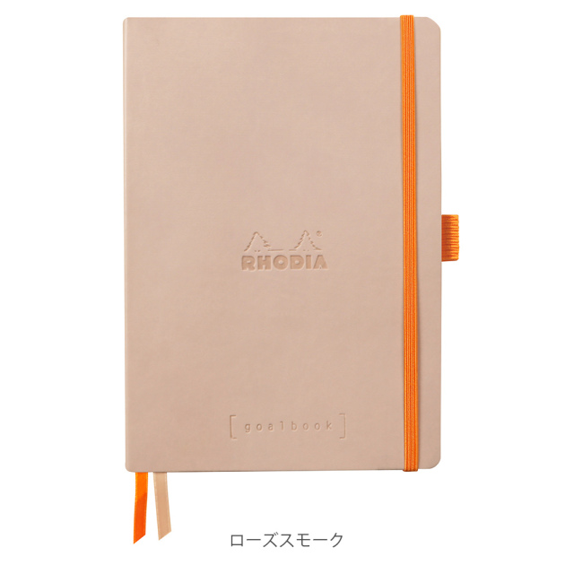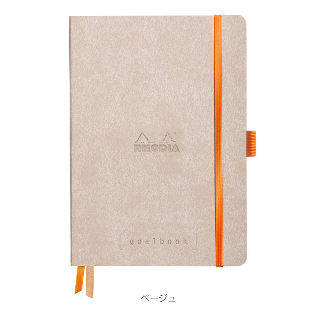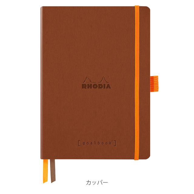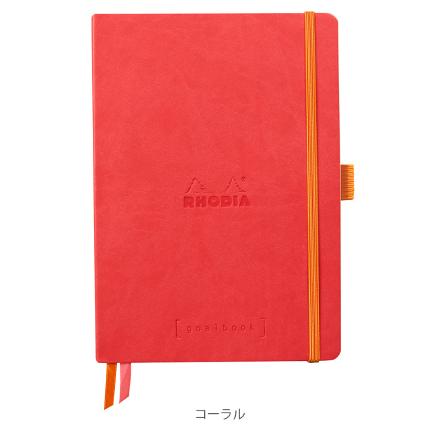丈夫なメモノートが欲しくてロディアを初めて、選びましたが表紙の合皮は薄くピンクがかった茶色でバンドのオレンジカラーと対照的に高級感があり、ページ数も多く、ページに番号が振られていたり、2本のしおり(ホワイトとオレンジカラー)があることでメモをして探しているページが見つからないときもすぐにみつけることができ、ペンをゴムバンドに固定することもでき、利便性が高く使いやすいです。