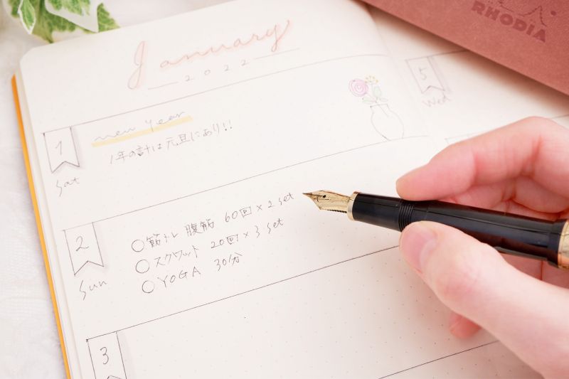 インデックス、ナンバリングページに加え、自由にカスタマイズできる2種類のパーペチュアルカレンダーも完備しており、日々のノートとしての機能はもちろん、あなたのゴールまでの道程を完璧にサポートします。