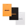 オレンジとブラックの表紙に、薄いパープルの5mm方眼の定番ブロックロディア。滑らかで反射のない用紙は、鉛筆にはやわらかいタッチを、ボールペンにはあざやかな発色を、万年筆にはインクにじみの無いスムースな書き味を保証します。
