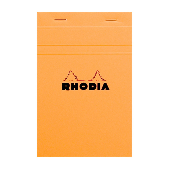 オレンジとブラックの表紙に、薄いパープルの5mm方眼の定番ブロックロディア。滑らかで反射のない用紙は、鉛筆にはやわらかいタッチを、ボールペンにはあざやかな発色を、万年筆にはインクにじみの無いスムースな書き味を保証します。