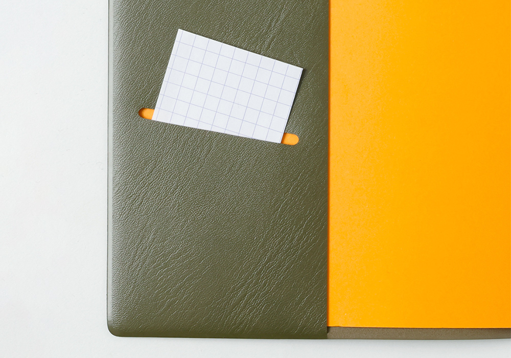 携帯性に優れた薄型・軽量なホチキス留めノートカバー。