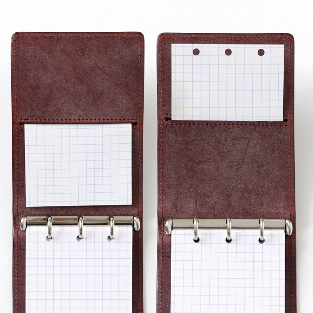 ロディアらしい携帯性、メモに特化した形状、そこにシステム手帳の保存性を加えたミニ3穴システム手帳です。
