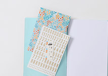 表と裏表紙についている2つのクリアポケットはブックマークにしたり、チケットやポストカードなどを保管することができます。