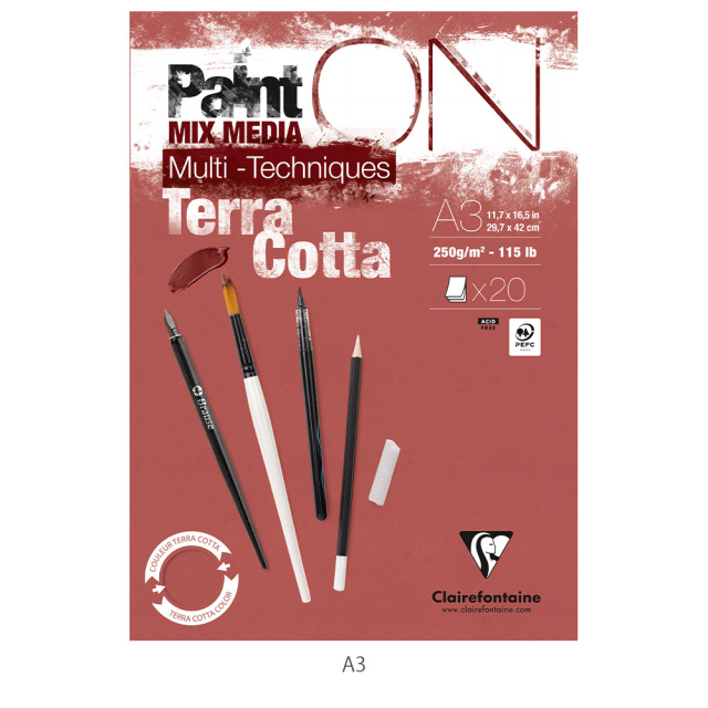 ペイントオンは、ドライテクニック、ウェットテクニック問わず、幅広い表現方法に適し、保存性にも優れたミックスメディアペーパー(セルロース100%)です。