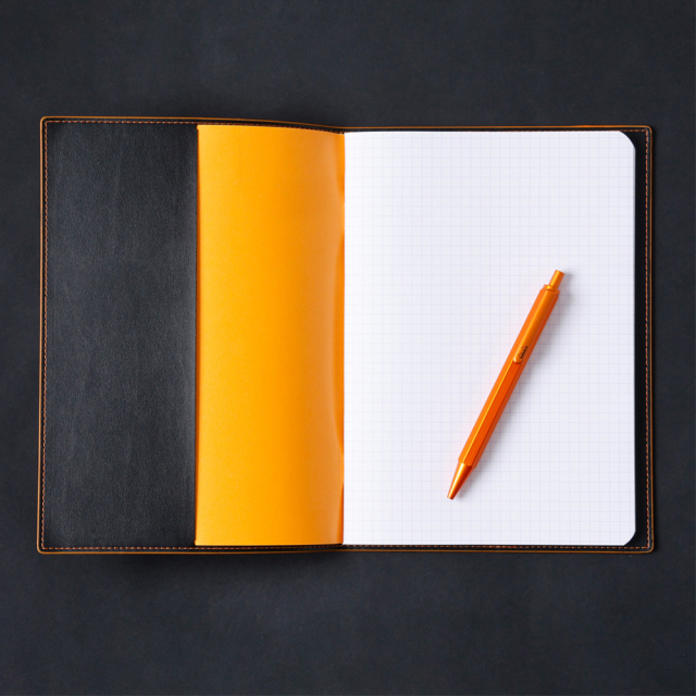 ロディアの筆記具コレクション「スクリプト」のテクスチャーを彷彿とさせるメタリックのPUレザーを採用したカバーが登場。