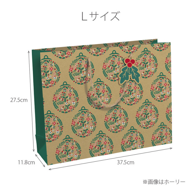 持ち手にはアクセントになるミニタグが付いており、クリスマスのギフトバッグにぴったりです。