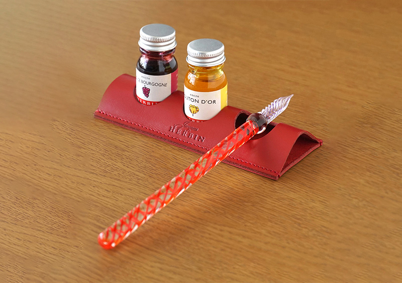 トラディショナルインクミニや香り付きインク(10ml)などを収納して安定した状態での筆記に便利なほか、ペンレストとしてもご使用いただけます。