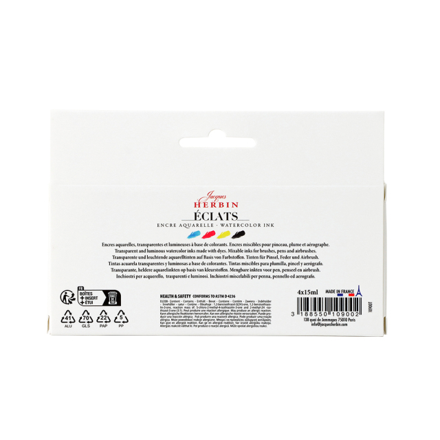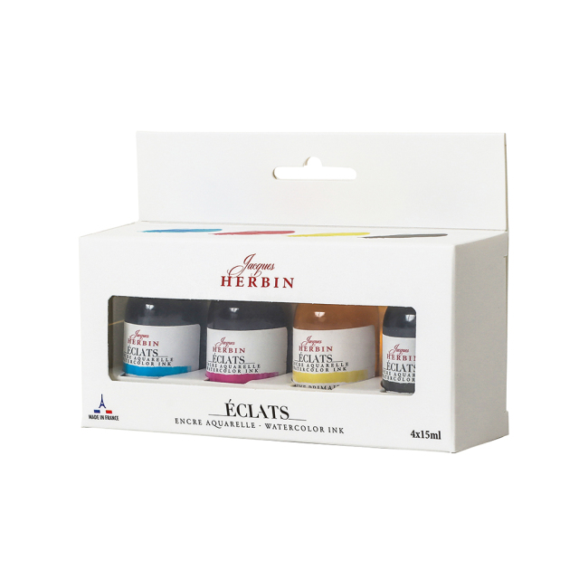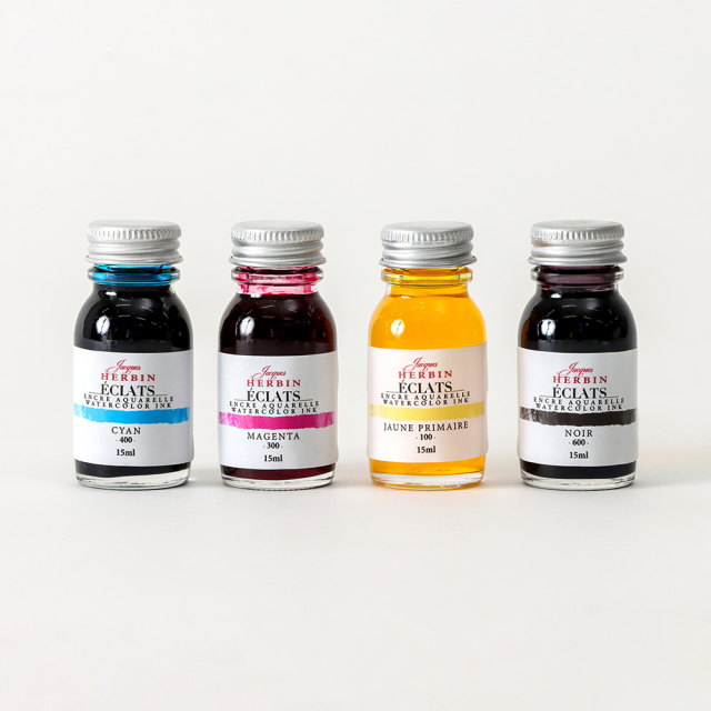 インクの老舗HERBIN(エルバン)、ドローイングインクのコレクション「Éclats(エクラ)」のCMYKを組み合わせたインクのセット。