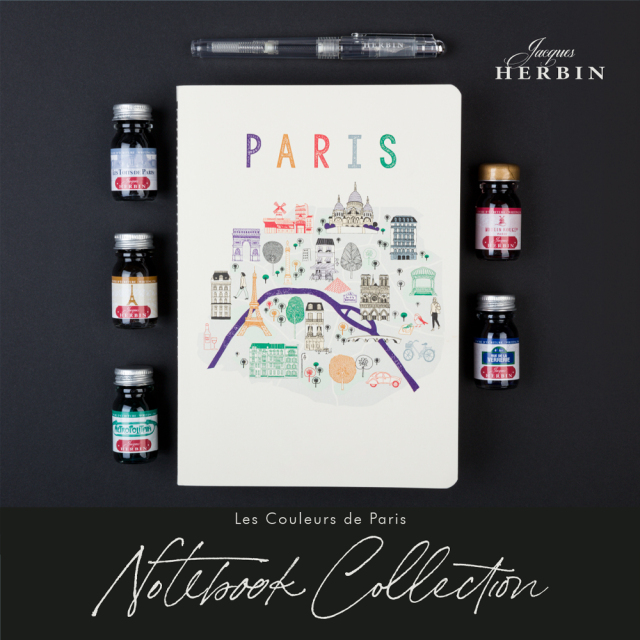 パリの歴史ツアーへといざなう、特別に開発された 5 色のインクのモチーフとパリのマップが表紙になったノートが登場。