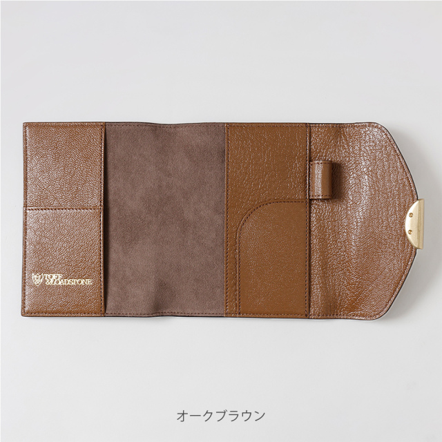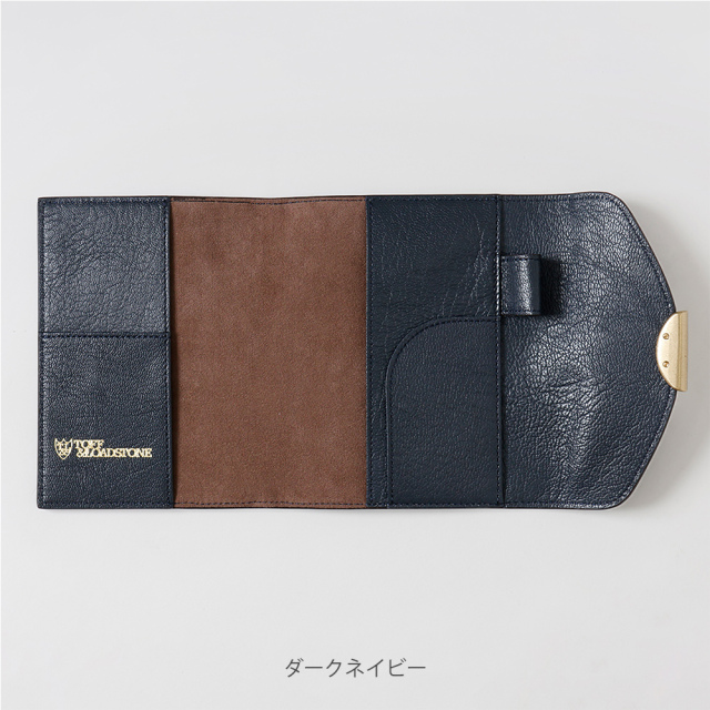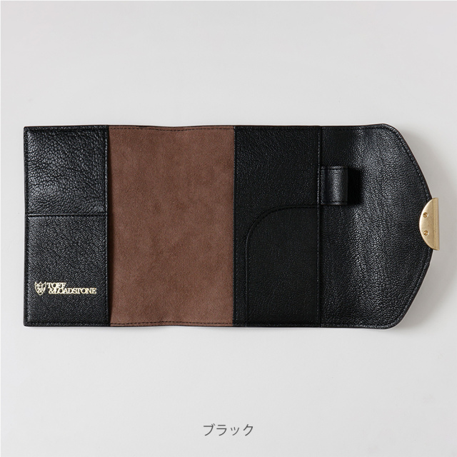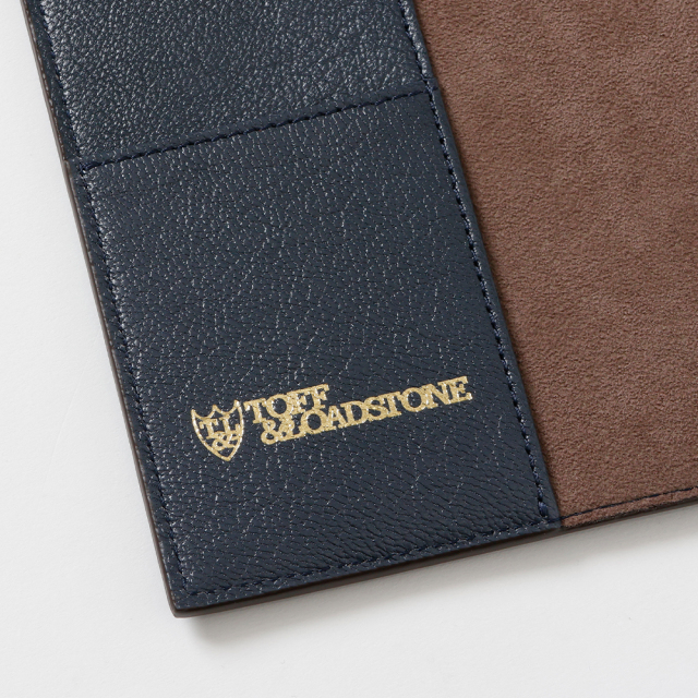 見返しに「TOFF&LOADSTONE」のブランドロゴ。カードポケットとペンホルダーも備えており、日々の手帳の筆記をよりスムーズにしてくれます。