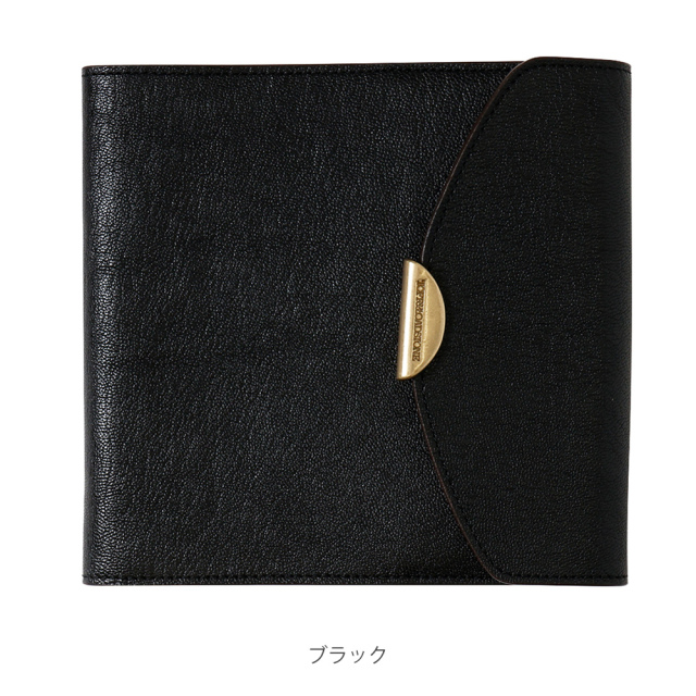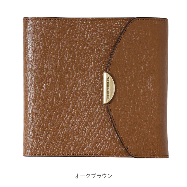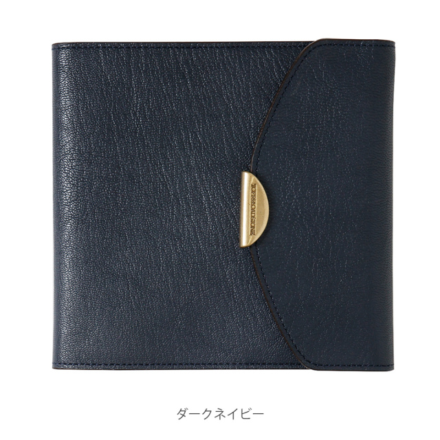 ブランドネームが入った真鍮金具のモチーフを採用。真鍮の重みを活かし、静かに閉じるフラップとなります。※マグネットではございません。