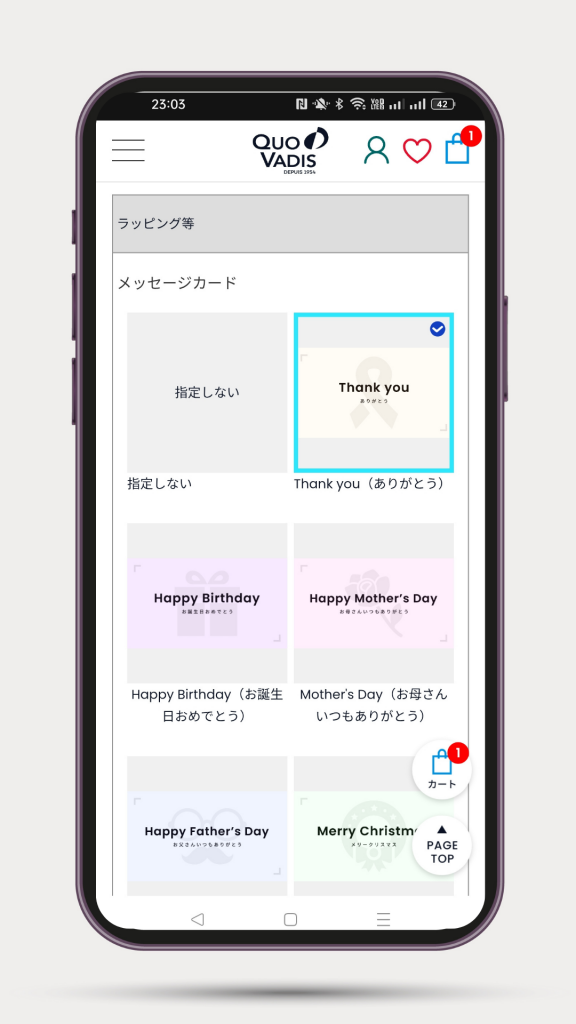 クオバディス・ジャパン オンラインショップで、「eギフト」サービスを開始しました。