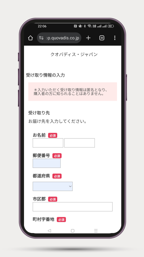 3.お届け先の住所と、配送希望日ございましたら入力して完了です。